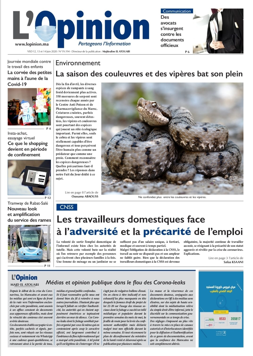 L'Opinion du 12, 13 & 14 Juin 2020 est entre vos mains en cliquant sur le lien suivant: