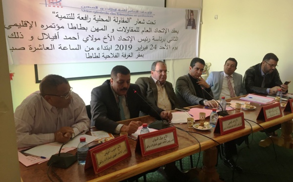 ترأس رئيس الاتحاد العام للمقاولات والمهن الأخ مولاي احمد افيلال المؤتمر الإقليمي للاتحاد بطاطا تحت شعار: المقاولة المحلية رافعة للتنمية . بالغرفة الفلاحية بالإقليم، وكان الأخ أفيلال مرفوقا بالكاتب العام للاتحاد الأخ محمد الذهبي الى جانب نائب رئيس الاتحاد منسق الجهة بالاتحاد رفقة الأخ جمال